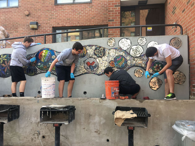 Binghamton Housing Authority is an assisted living facility in downtown Binghamton. Jablon Studios partnered with the PwC Scholars Program at Binghamton University to create a mosaic pavilion space and courtyard for residents to enjoy. The project was a fun and rewarding experience for all involved.