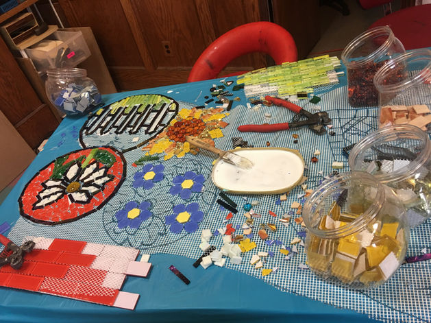Kali's Klubhouse is an place of healing for children and adults where equine assisted learning is used to provide emotional suppor and therapy to individuals. Jablon Studios partnered with the PwC Scholars Program at Binghamton University to create beautiful mosaics to decorate the learning spaces of the organization. Students worked with Emily Jablon to create unique designs that reflected the spirit of healing and love for equestrian learning that Kali's Klubhouse values.